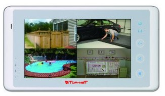 Монитор видеодомофона цветной, hands free, до 5 мониторов и 2 дверных блоков в одной системе, Touch Screen TFT LCD, диагональ экрана 7 , НЧ видеовыход (TV out), питание 15V DC (адаптер в комплекте), цвет белый