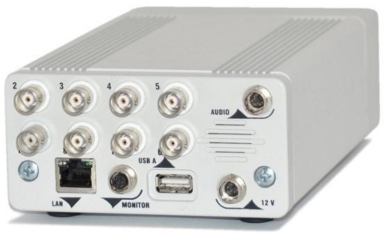 Трал 78 малогабаритный сетевой видерегистратор. 8 каналов видео, 2 канала звука, разрешение 704х288 полукадр, интерполяция до 704х576, H.264 или M-JPEG, 1-25 к/с на канал, суммарно 200 к/с, зонный детектор движения, работа по сети TCP/IP, интерфейс Fast Ethernet 10/100/1000. Видео и звук сохраняются на извлекаемом твердотельном 2.5 SSD-диске. Запись координат от внешнего приемника GPS или Глонасс,географическая привязка к Google Maps. Интерфейс RS232 для подключения до 4-х охранных датчиков посредством контроллера шлейфов A-Box 4. Литой алюминиевый корпус. Вес 1,1 кг. Размеры 185x110x55 мм. Питание DC 9-16 В, 7 Вт.