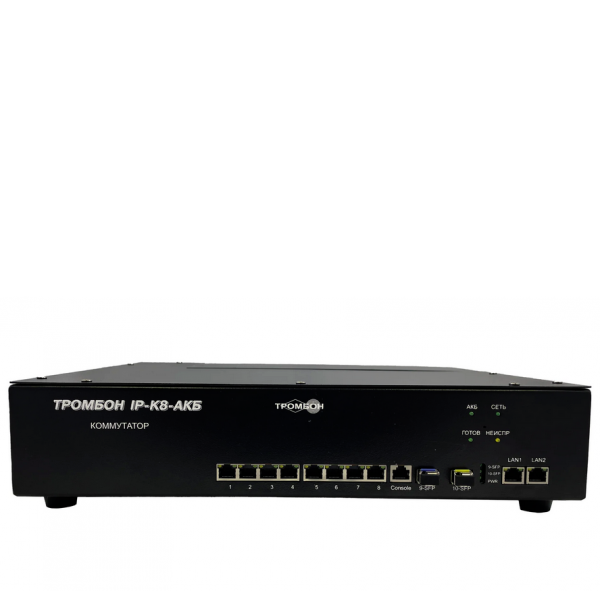 Коммутатор PoE промышленный управляемый Тромбон IP-K8-акб. Оснащен 8х10/100/1000Mbp PoE (IEEE802.3af/at до 30Вт на порт 1-8, доступный бюджет мощности PoE 120Вт) и 2хSFP 1000. Исполнение 19 (2U) стоечное. Коммутатор имеет встроенный блок питания на 230В и встроенный резервный истрочник 22-28 В, для поддержания работы коммутатора и подключенных по PoE устройств в отсутствии основного напряжения. Сертифицирован согласно требованиям пожарной безопасности ТР ЕАЭС-043/2017. Внимание АКБ не входит в комплект поставки и приобретается отдельно.