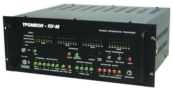 Многозонный прибор управления техническими средствами оповещения и эвакуацией для СОУЭ 3, 4 и 5 типов зон светового и звукового оповещения - 8 напряжение питания 220В 50Гц встроенный блок резервного питания 12В встроенный звуковой процессор на 8 речевых сообщений по 15 сек. порт для подключения до 8 удаленных консолей Тромбон-УК сопряжение с ПК (RS 485) сопряжения с системами безопасности Орион, Интеллект+ и GOAL контроль линий связи вход ГО и МЧС габариты - 483х430х190 мм (4U) вес - не более 14кг