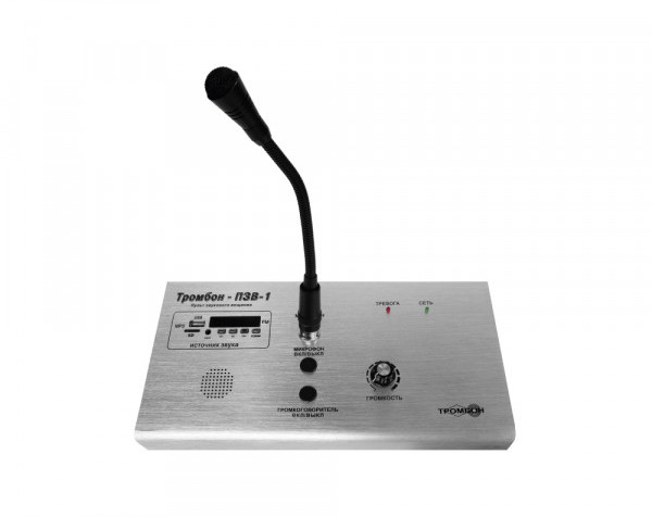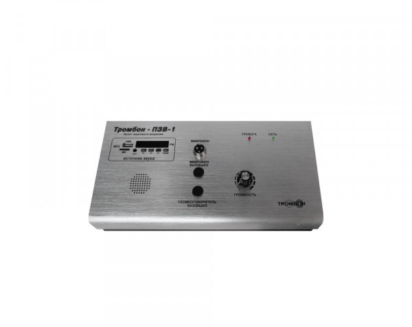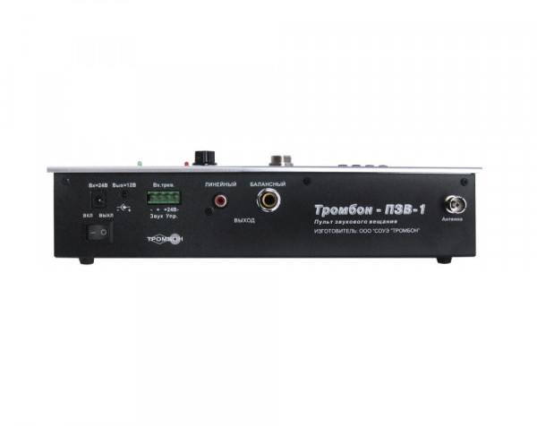 ТРОМБОН-ПЗВ-1 - пульт звукового вещания одноканальный предназначен для использования в составе систем оповещения и ведомственных радиоузлов для воспроизведения звуковых программ с различных электронных носителей и приёма сигналов эфирного вещания (FM).