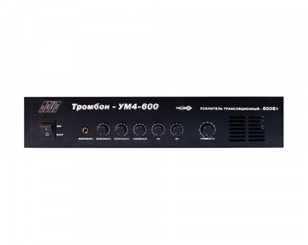 Тромбон-УМ-4-600 - усилитель высокой мощности предназначен для усиления звуковых сигналов при работе в составе систем оповещения людей о пожаре различных зданий.