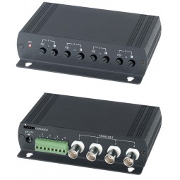 Активный 4-х канальный приемник видеосигнала (цв.) по витой паре с авторегулировкой. До 1500м с пассивным передатчиком (TTP414V), до 2000м с активным передатчиком (4xTTA111VT). Вх. клеммы (на 4 канала)/разъём питания. Вых. 4хBNC. Настройка автоматическая или ручная. Питание 12VDC, 1A (БП в комплекте). Рабочая температура 0...55 С. Размер 125x105x30мм.