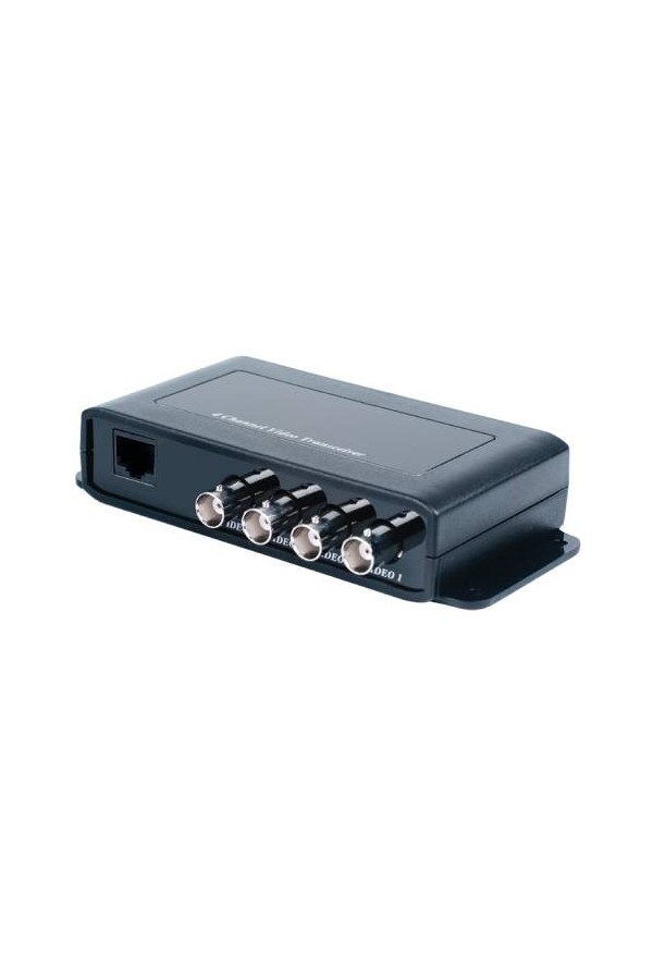 Приемопередатчик 4-х видеосигналов по витой паре на 600 м., имеет на входе витую пару под RJ45 и 4 канала под BNC на выходе, с повышенной помехоустойчивостью