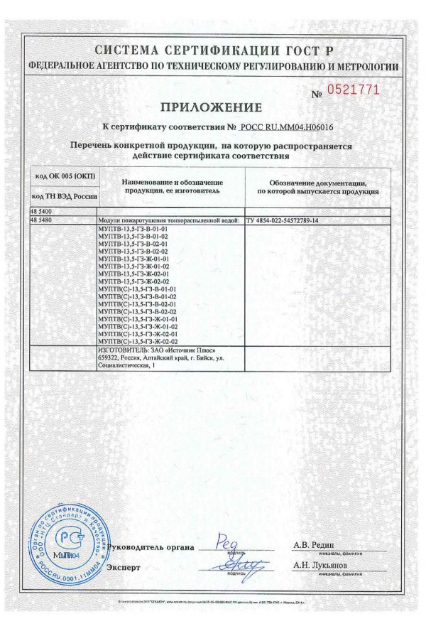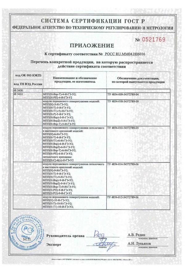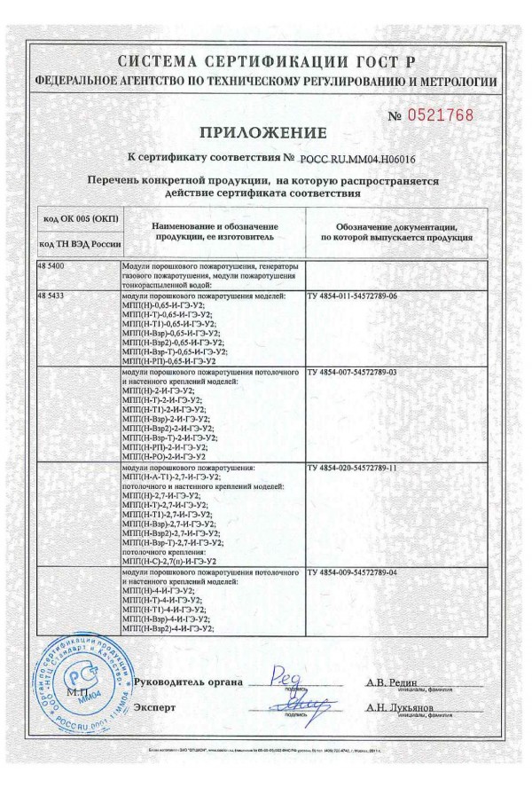 МПП Тунгус-2 во взрывозащищенном исполнении (2ЕхsiaIIBT3 X). Предназначен для автоматического подавления очагов пожара классов А (твердых веществ), В (жидких веществ), С (газообразных веществ) и Е (электрооборудования, находящегося под напряжением без учёта параметра пробивного напряжения огнетушащего порошка).