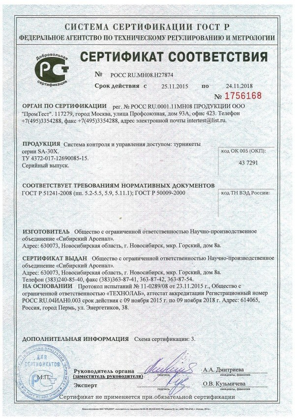 - турникет SA с автоматическими планками антипаника;