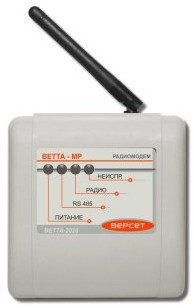 Универсальное приемопередающее устройство с модемом радиоканала, для работы в составе системы "ВЕТТА-2020", f-раб.868.95 МГц, P-изл.25 мВт, дальность связи до 1200 м, разъем антенны SMA-F, RS-485, U-пит.10...15 В, I-потр.100 мА, IP41, t-раб.-20...+50°С, 207х105х40 мм.
