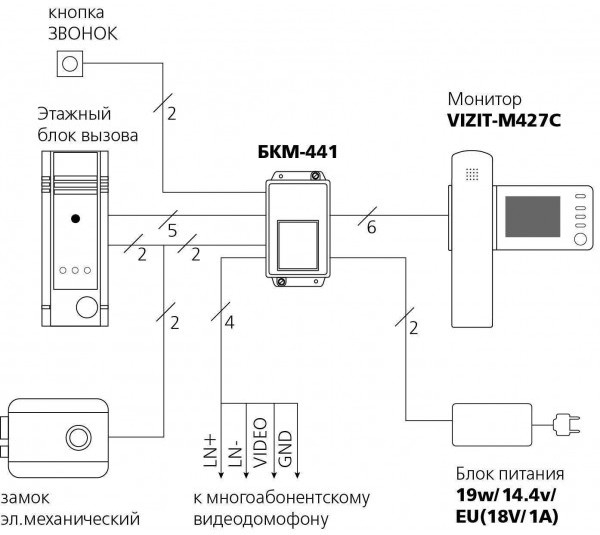 Работа с индивидуальными блоками вызова обеспечивается только при использовании блока коммутации монитора БКМ.