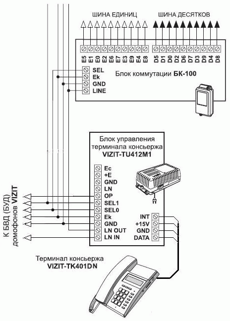 VIZIT-TK401DN - терминал пульта консьержа VIZIT-ПК200, VIZIT-ПК800 для совместной работы с VIZIT-TU412M1, VIZIT-TU418.