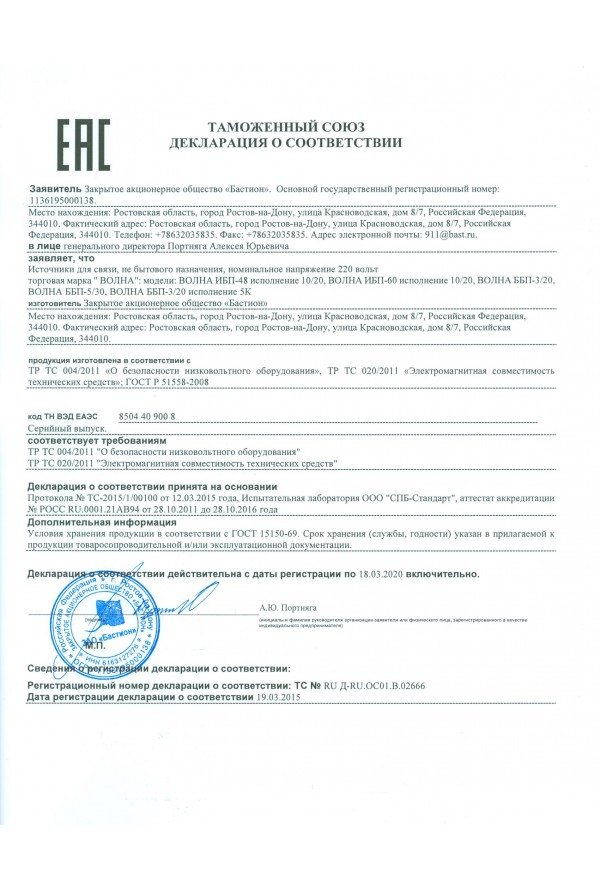 ВОЛНА ББП-3/20 исп. 5К для стационарных радиостанций