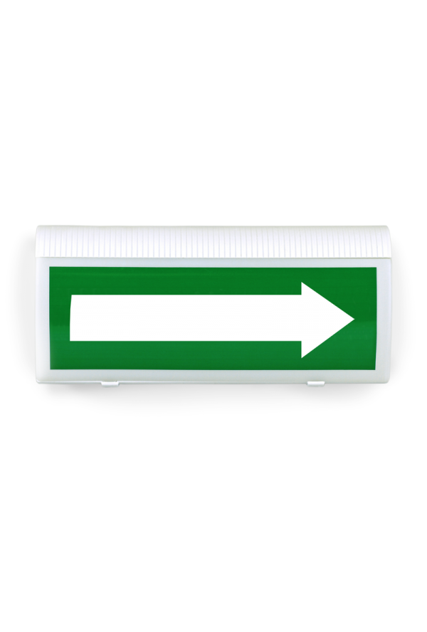 При пожаре оповещатель подсвечивает табло с указателем «СТРЕЛКА ВПРАВО» мигающим белым светом, информируя о выходе из помещения.