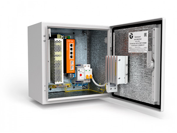 Всепогодный узел коммутации для обеспечения работы до 4-х IP-видеокамер с питанием по технологии РоЕ/PoE+, организации группового канала передачи данных по волоконно-оптической сети, а также поддержания заданного температурного режима при эксплуатации.