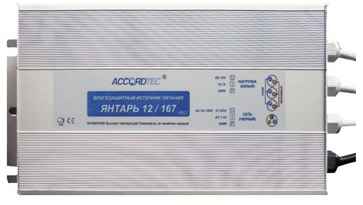 Янтарь 12/167 - источник стабилизированного питания DC 12 V, номинальный ток нагрузки 16,7A, IP67.