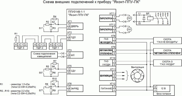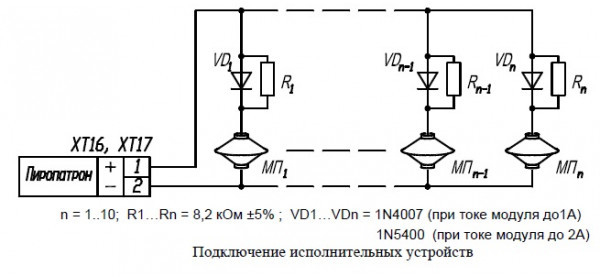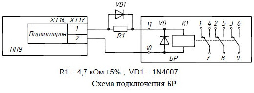 Для увеличения нагрузочной способности выхода тушения ППУ-ПК используется БР (увеличение количества подключаемых к ППУ исполнительных устройств - пиропатронов или электромагнитных клапанов).