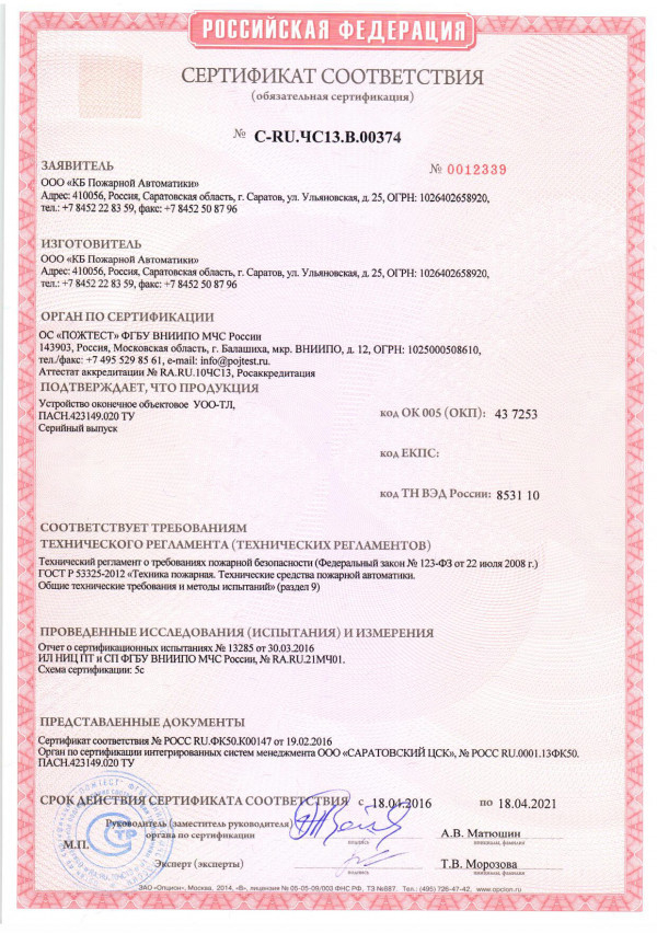 УОО-ТЛ - устройство оконечное объектовое предназначено для работы в составе адресной системы пожарной сигнализации РУБЕЖ в качестве устройства передачи извещений в формате ADEMCO Contact ID посредством коммутируемых телефонных соединений.