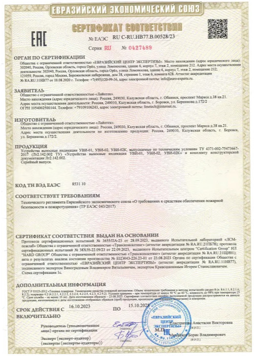Устройство выносной индикации УВИ-01 предназначено для индикации работы точечных извещателей. Индикация красного цвета.