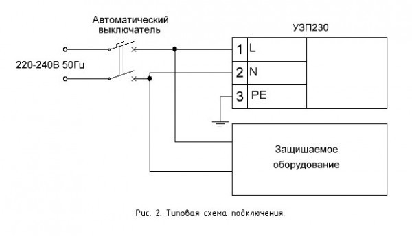 Устройство защиты линии питания напряжением 230В переменного тока.