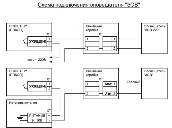 Для подключения оповещателя в шлейф сигнализации производитель рекомендует использовать коробки соединительно - разветвительные (КСРВ) с маркировкой взрывозащиты (1ExdbIIBT6Gb) или аналогичные.