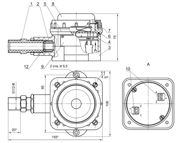 Звук. и свет. сигнал (подачей напряж.)