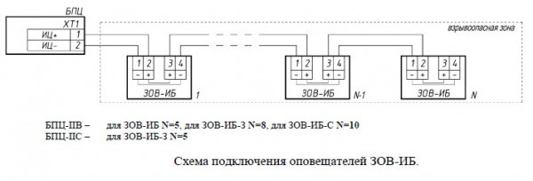 Для подключения оповещателя в шлейф сигнализации производитель рекомендует использовать коробки соединительно - разветвительные (КСРВ-i) с маркировкой взрывозащиты (0ExiaIICT6Ga) или аналогичные.